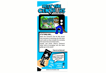Meet the Centaurs is a GM-less, one-page RPG. It can be printed front and back on 8.5 x 11 paper that can be folded into a tri-fold brochure.